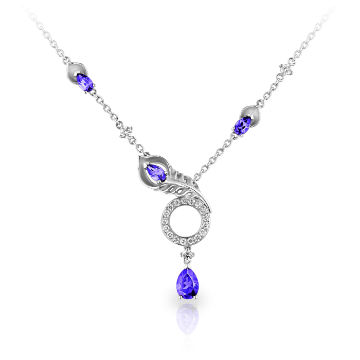 Origen Koleksiyonu'ndan 18 ayar beyaz altından yapılmış ve ışıltılı elmaslar ve tanzanitlerle süslenmiş ''Mistral'' Kolye'yi keşfedin. Ortalama ağırlığı 8,49 gram olan bu zarif parça, her türlü topluluğu zenginleştirmek için ideal olan zarafeti ve lüksü temsil ediyor.